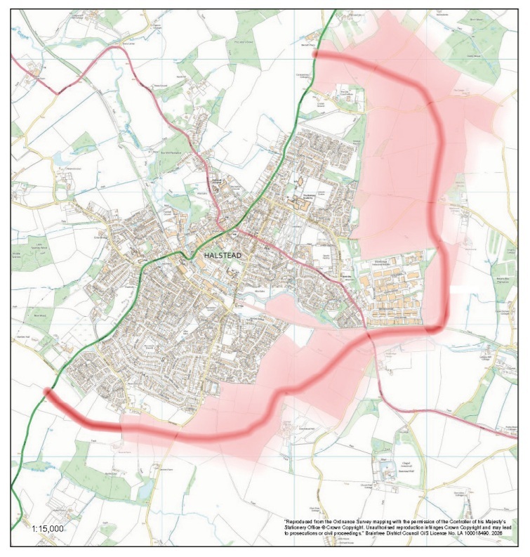 • A bypass linking the A131 south of Halstead to Colchester Road, then on to the A131 Sudbury Road north of Halstead